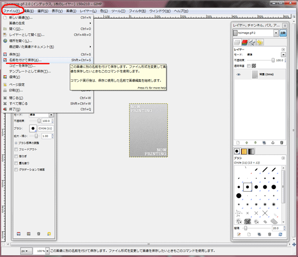 Gimpの使い方 画像をエクスポート 書き出し する方法